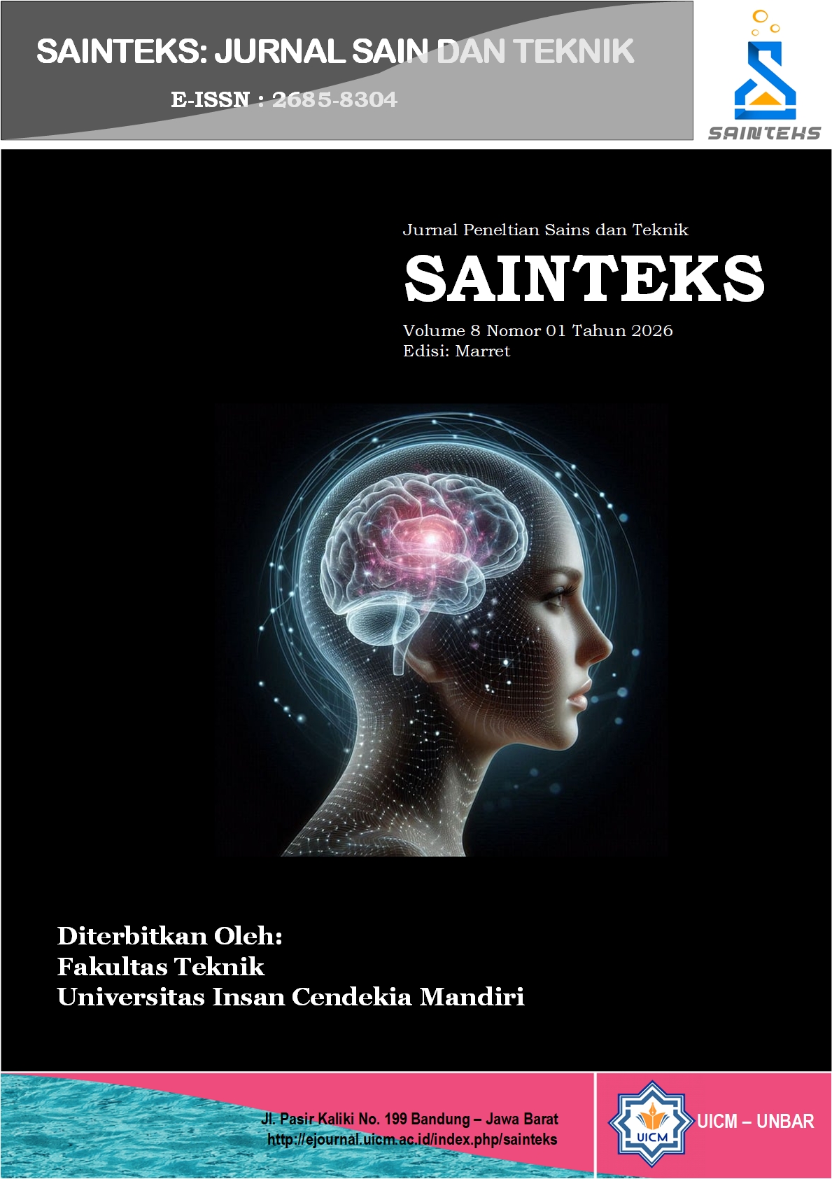 Sainteks is a scientific journal that publishes research papers encompassing all aspects of natural sciences, technology and engineering. This journal is published 2 (two) times a year (March and September) by the Faculty of Engineering UICM d/h UNBAR. The fields covered by the Sainteks Journal include: